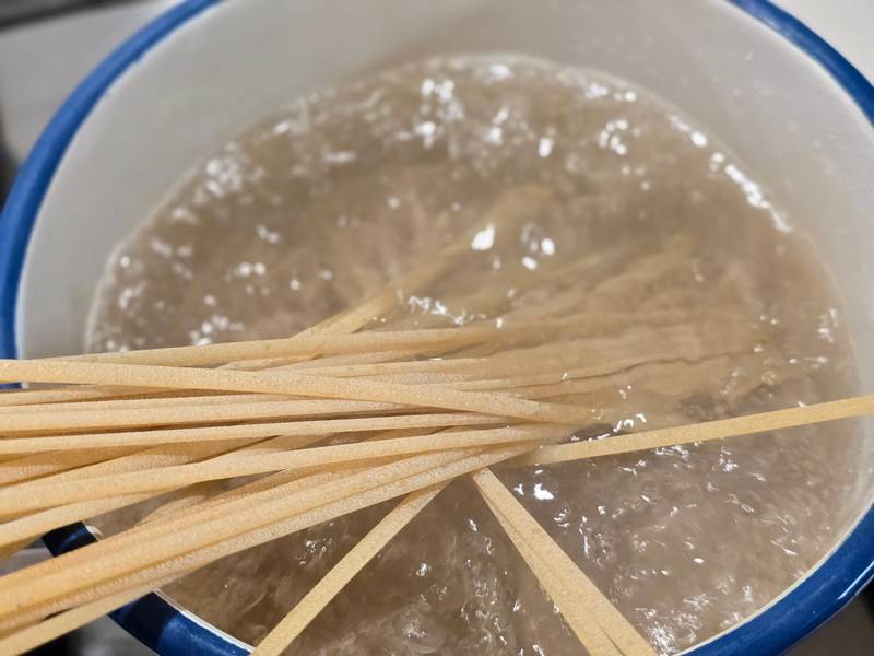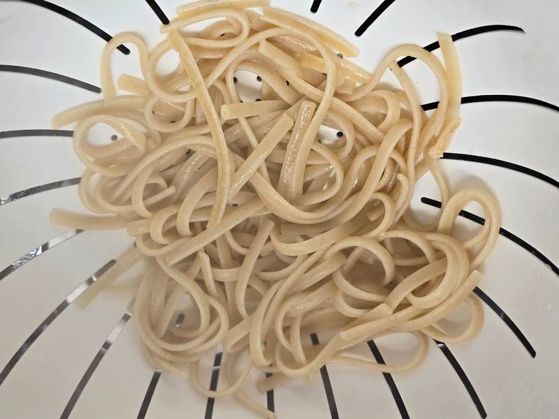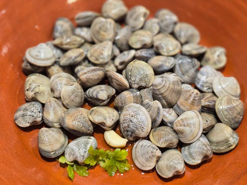 - Linguine: 70 grams (about 2.5 oz) – I chose semi-whole wheat linguine from a small, artisanal pasta maker here in Abruzzo. I prefer it for its healthier and more nutritious qualities, plus I adore this particular pasta factory! However, you can certainly use regular durum wheat semolina pasta. The most important thing is to choose a high-quality pasta that holds its shape well and is suitable for “risottatura”—that is, cooking the final moments of the pasta with the sauce, allowing it to absorb all those wonderful clam flavors. Look for bronze-drawn pasta (pasta trafilata al bronzo); it has a rougher texture that clings beautifully to sauces and is readily available even outside of Italy.