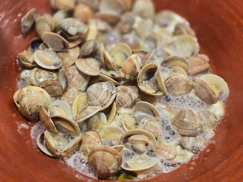 - Sauté the Aromatics and Clams: Simultaneously, in a traditional Abruzzese terracotta pan (or any wide, deep pan), add a generous drizzle of extra virgin olive oil. Over medium heat, immediately add the finely chopped fresh parsley and the whole garlic clove (you can crush it slightly if you prefer, or leave it whole to remove later).